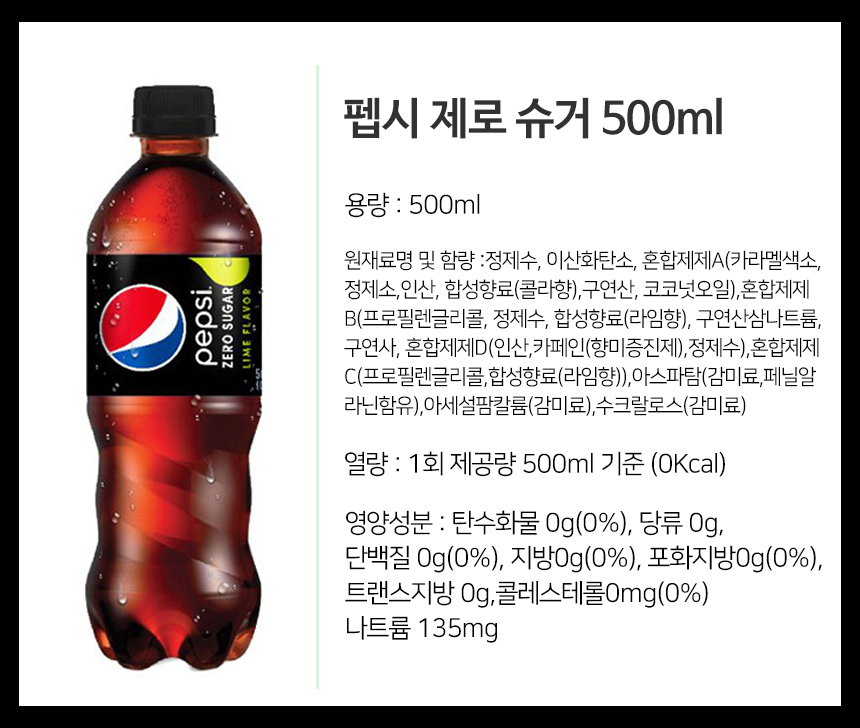 롯데칠성 펩시제로 콜라 500mlx20펫(업소용)