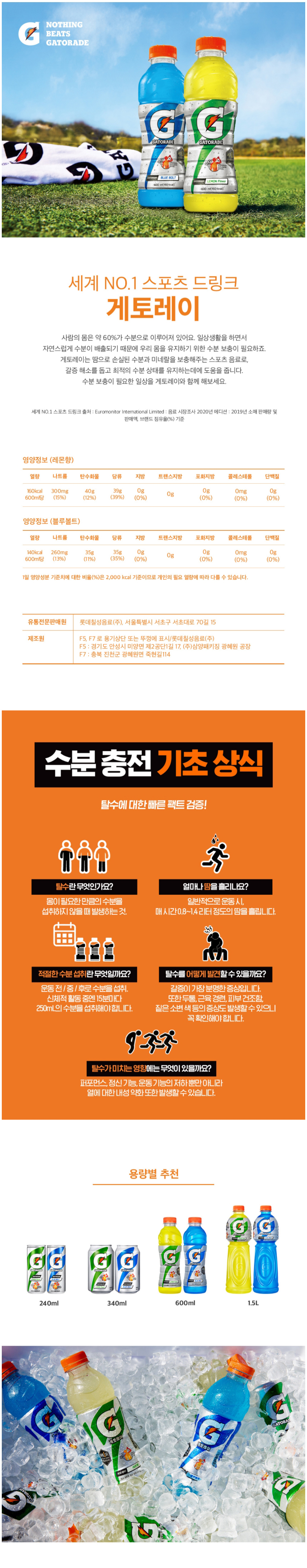 롯데칠성 게토레이 레몬 스포츠 이온음료 240mlx30캔