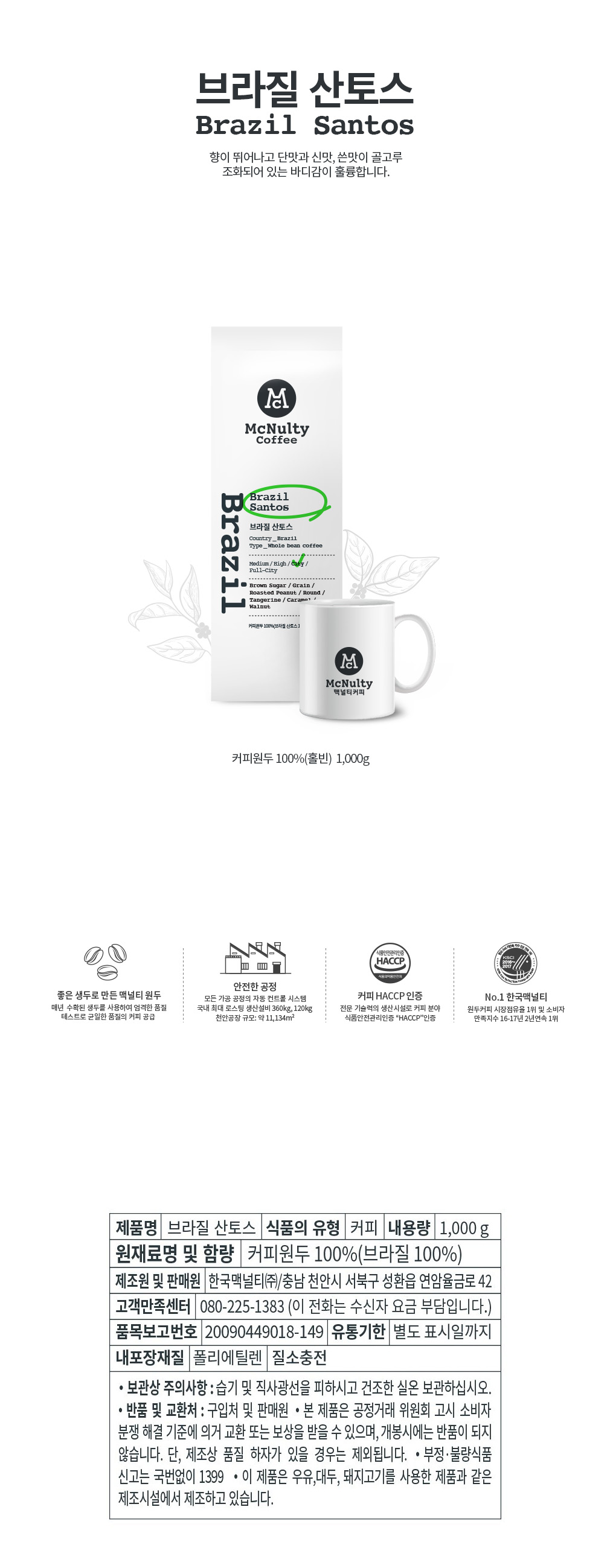 | 제품명 | 브라질산토스 홀빈 커피원두 1kg |