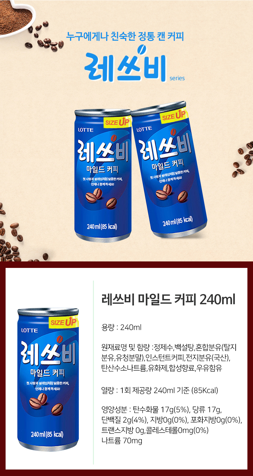 롯데칠성음료 레쓰비 마일드 커피 240mlx30캔
