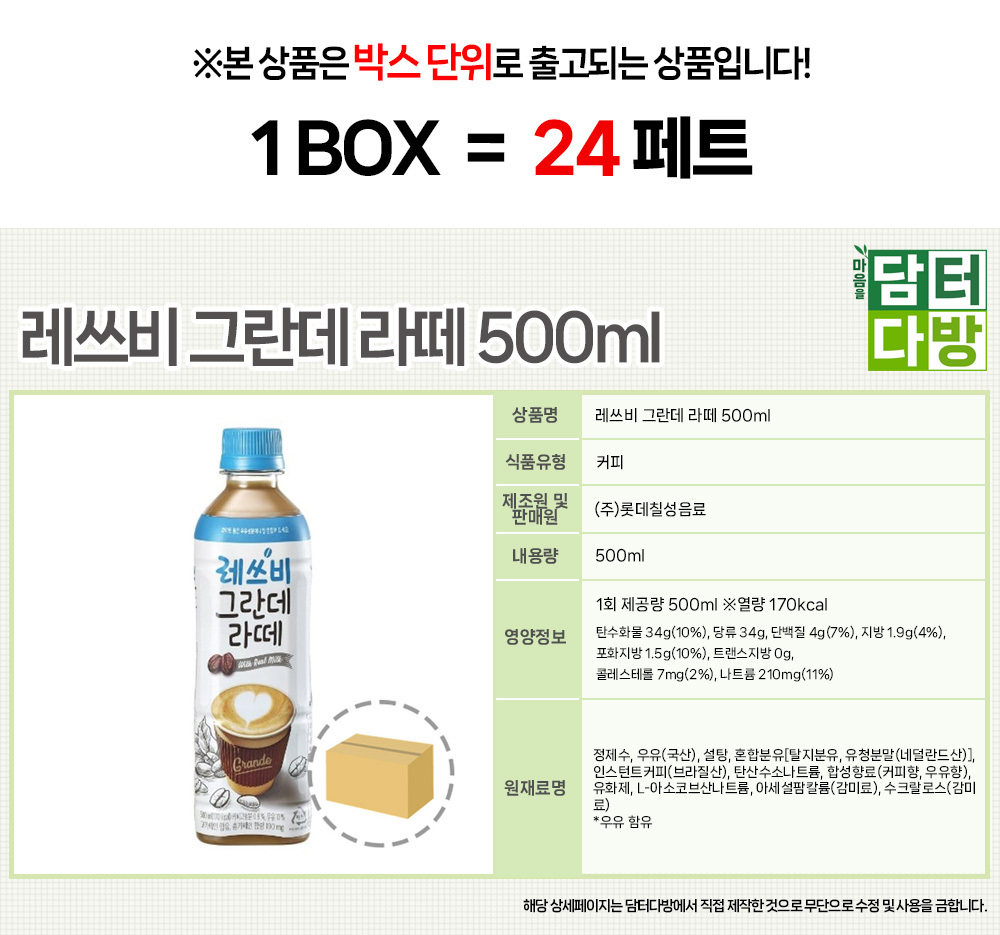 레쓰비 그란데 라떼 500ml (24페트)