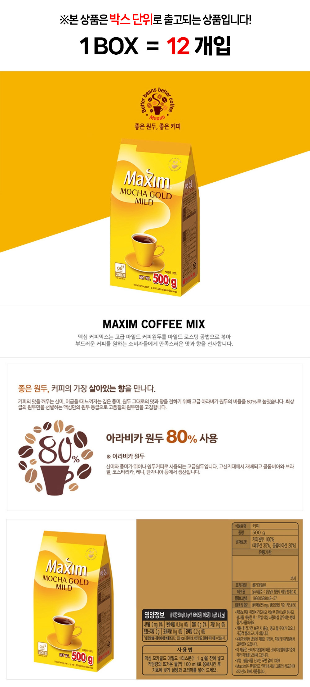 (무배) 동서식품 맥심 모카골드마일드 500g 1BOX (12개입)