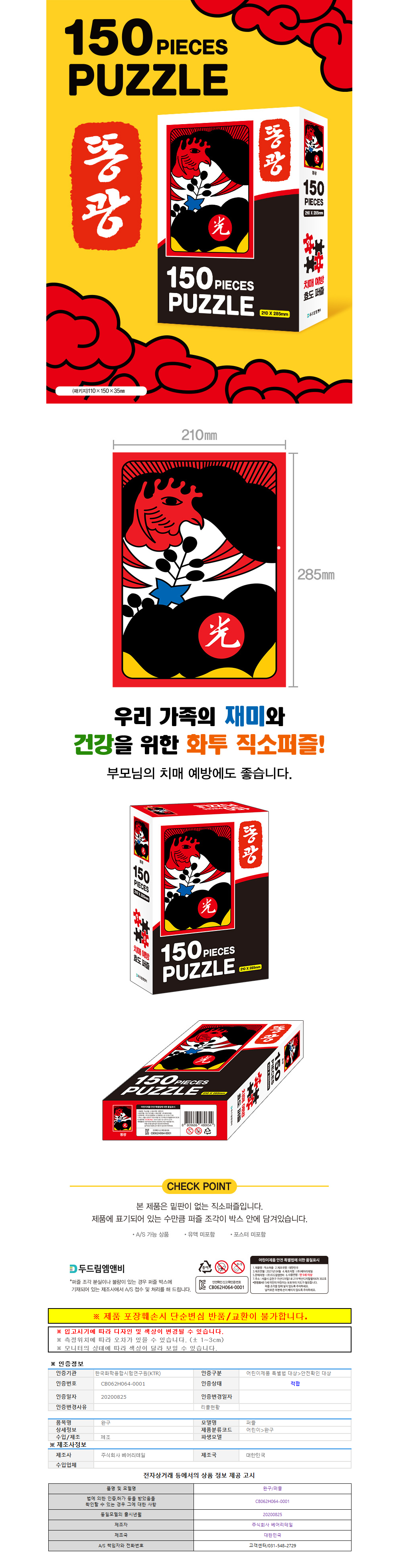 두드림 효퍼즐 화투 직소퍼즐 150pcs 똥광