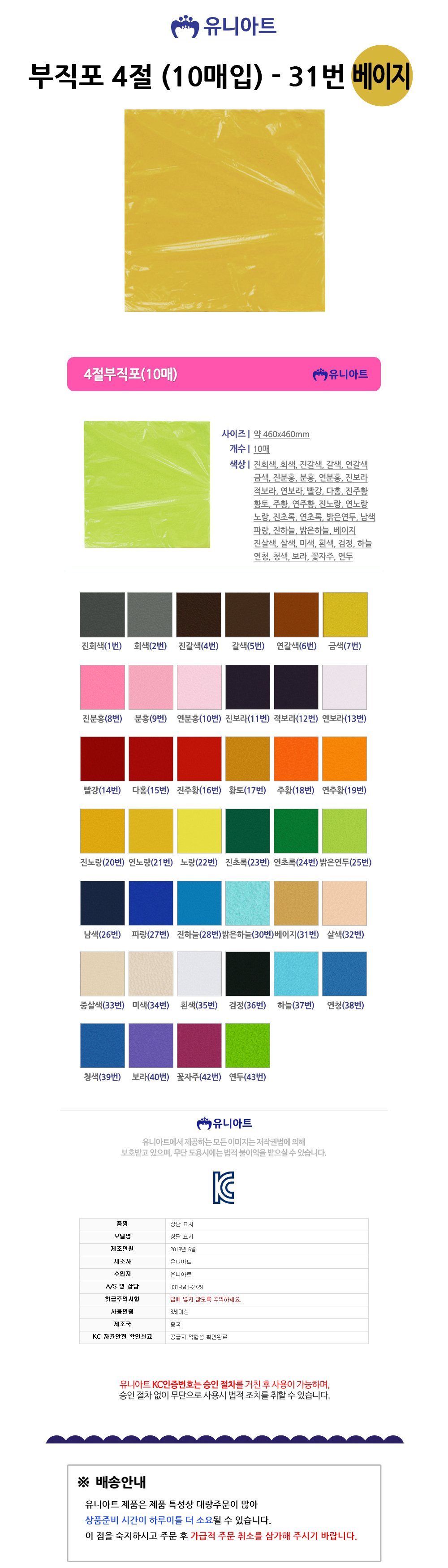 유니아트 부직포 4절 10매입 베이지 31번