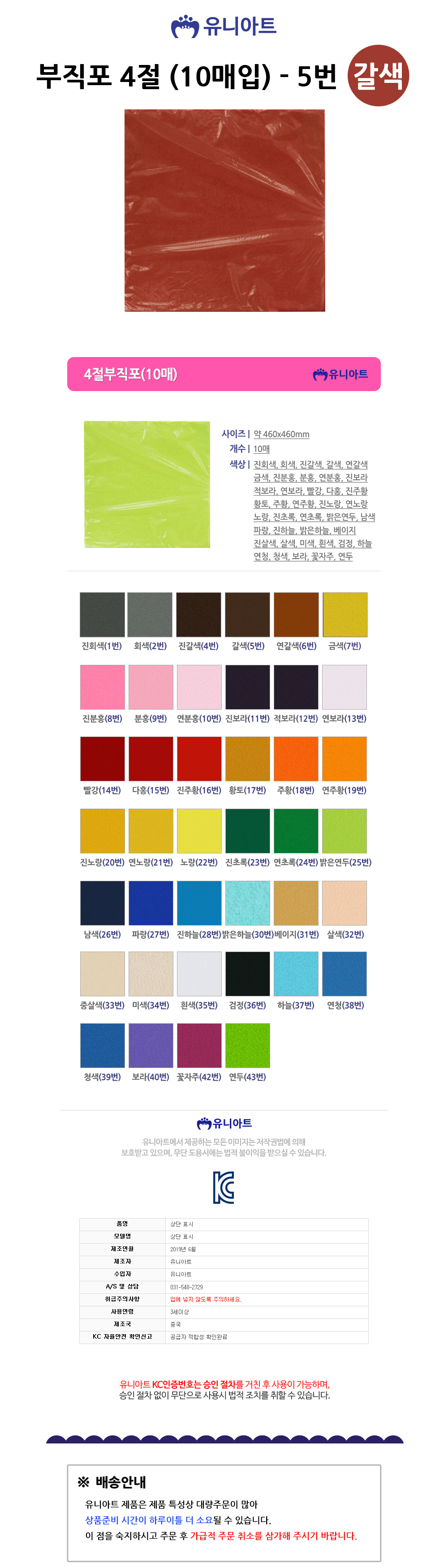 유니아트 부직포 4절 10매입 갈색 5번