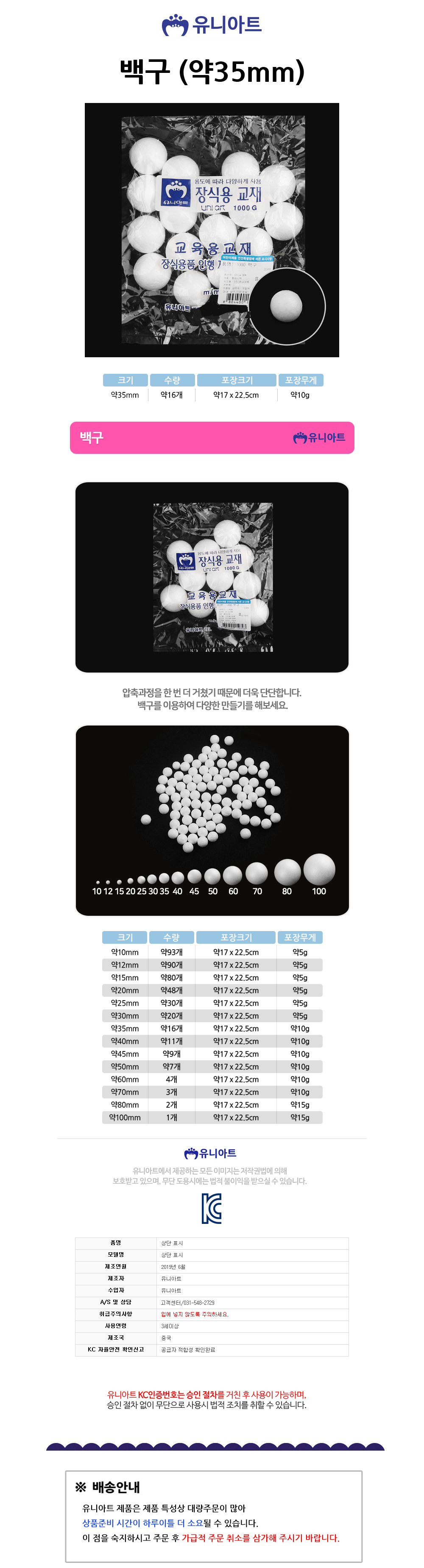 유니아트 만들기재료 스치로폼 백구 (약 35mm) (벌크포장) 스티로폼