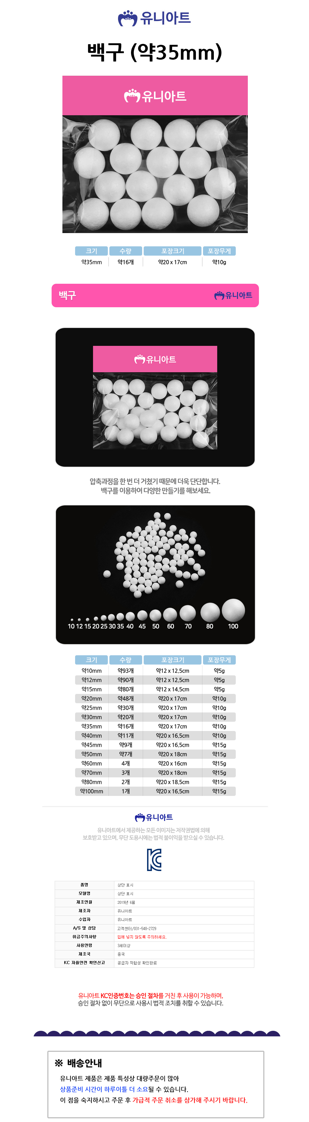 유니아트 만들기재료 스치로폼 백구 (약 35mm) 스티로폼