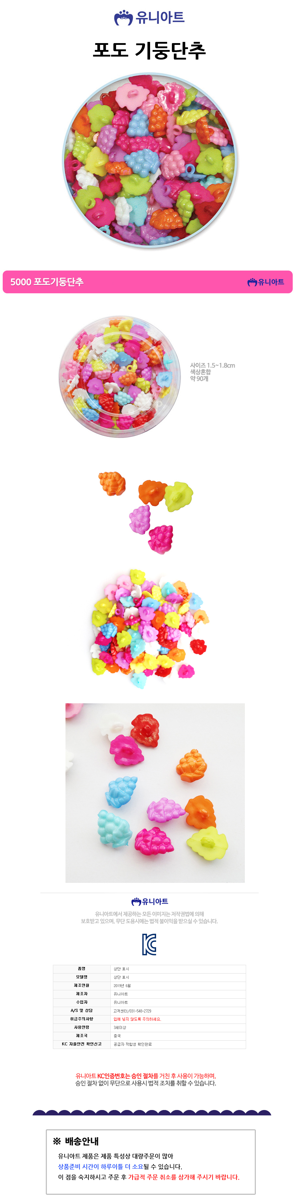 유니아트 모양단추 5000 포도 기둥단추