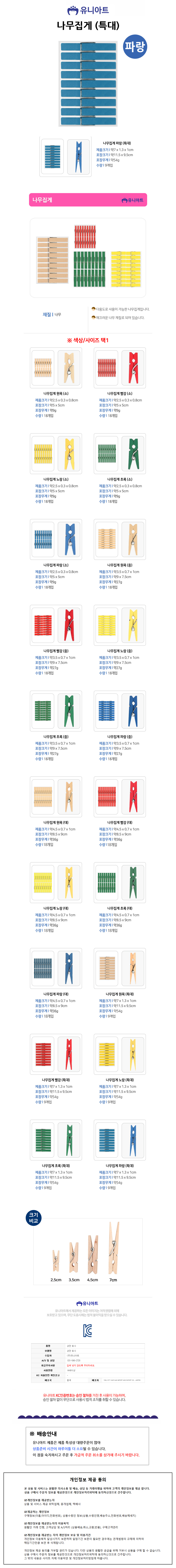 유니아트 (우드) 1000 나무집게 (특대) (파랑)