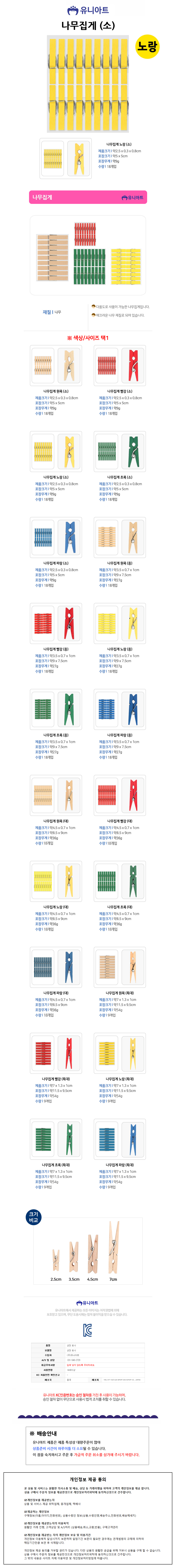 유니아트 (우드) 1000 나무집게 (소) (노랑)