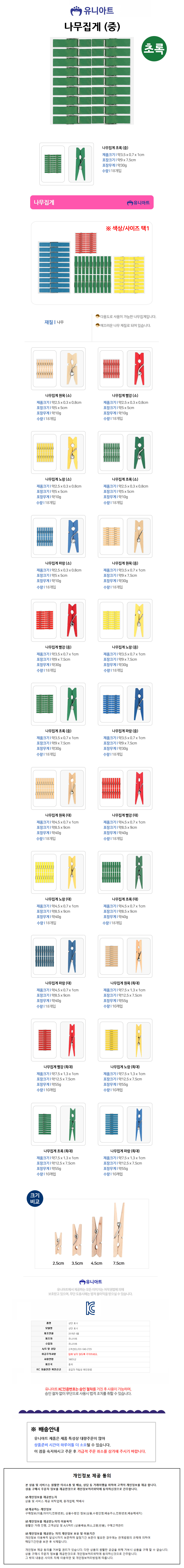 유니아트 우드 1000 나무집게 중 초록