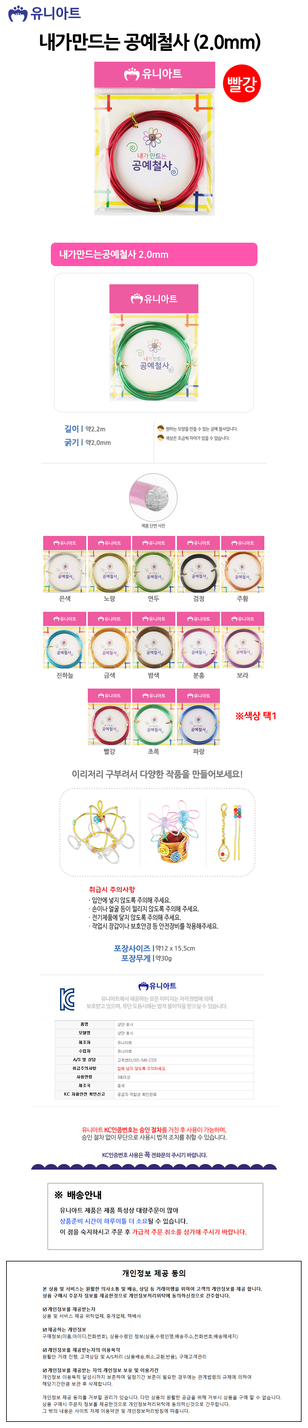 유니아트 (철사) 2500 내가만드는 공예철사 (2.0mm) (빨강)