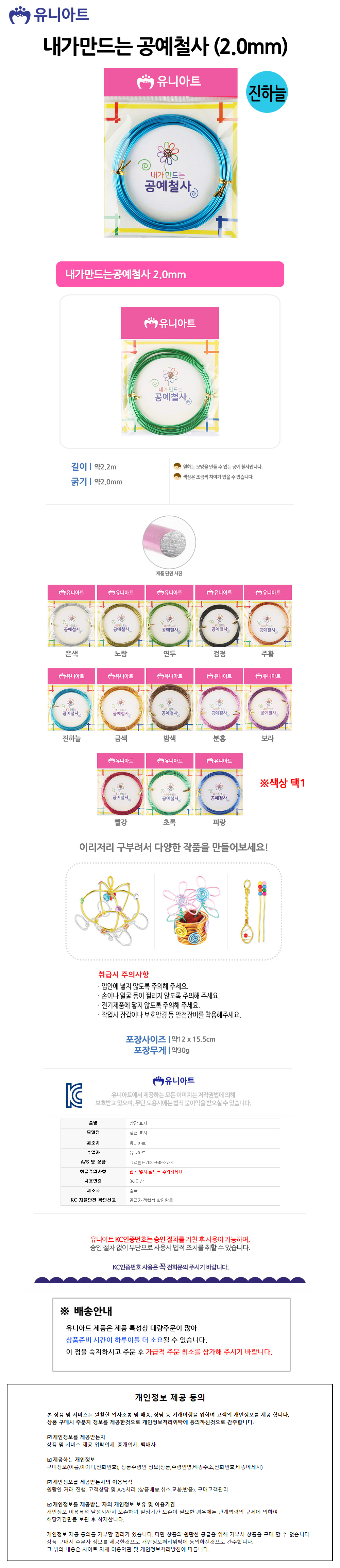 유니아트 (철사) 2500 내가만드는 공예철사 (2.0mm) (진하늘)
