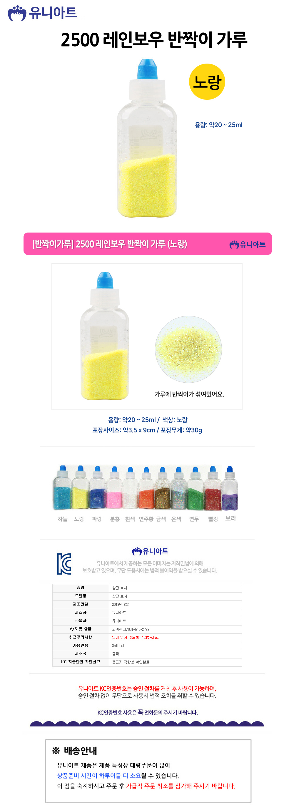 유니아트 반짝이가루 2500 레인보우 반짝이 가루 노랑