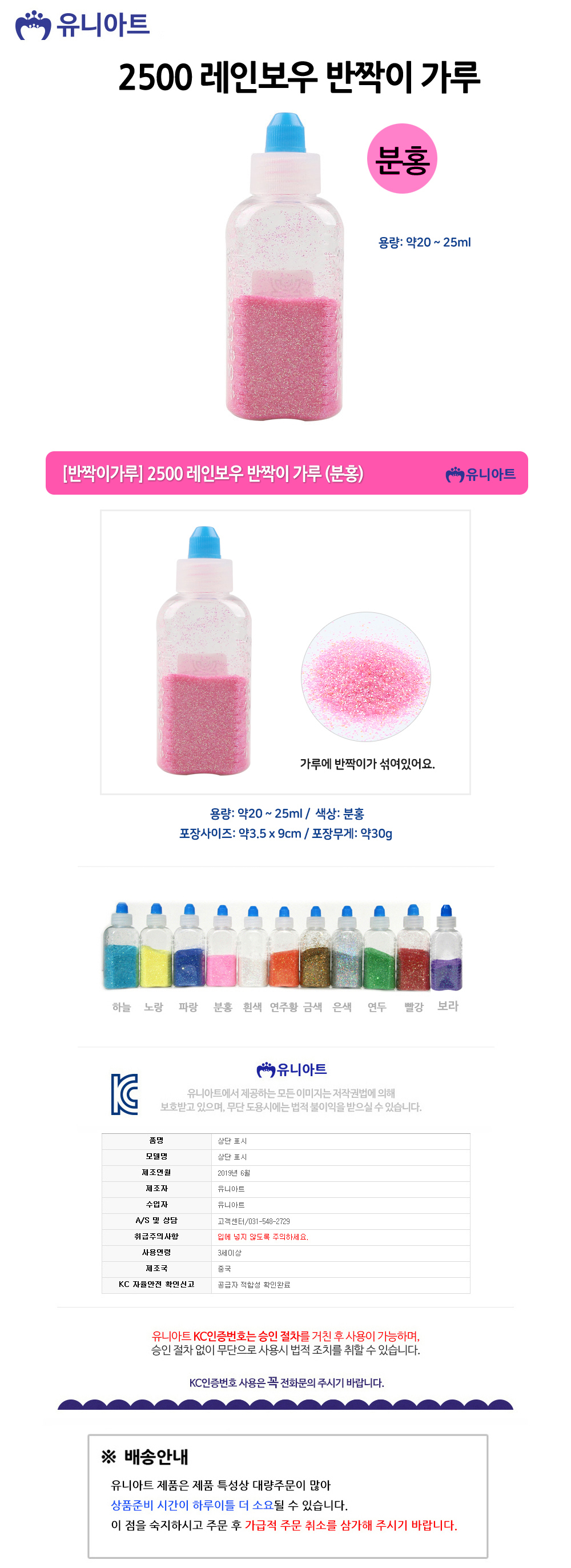 유니아트 반짝이가루 2500 레인보우 반짝이 가루 분홍