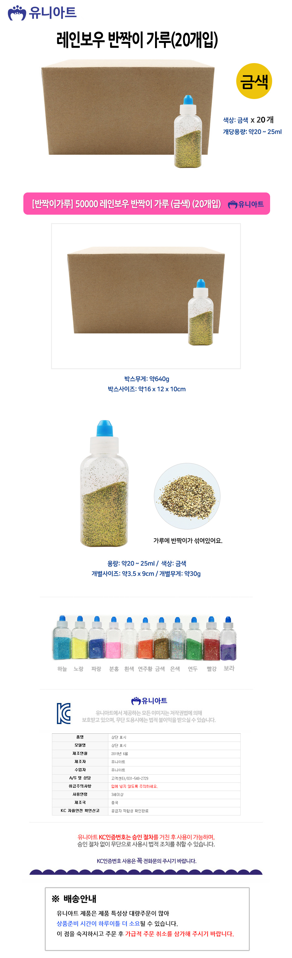 유니아트 반짝이가루 50000 레인보우 반짝이 가루 금색 20개입