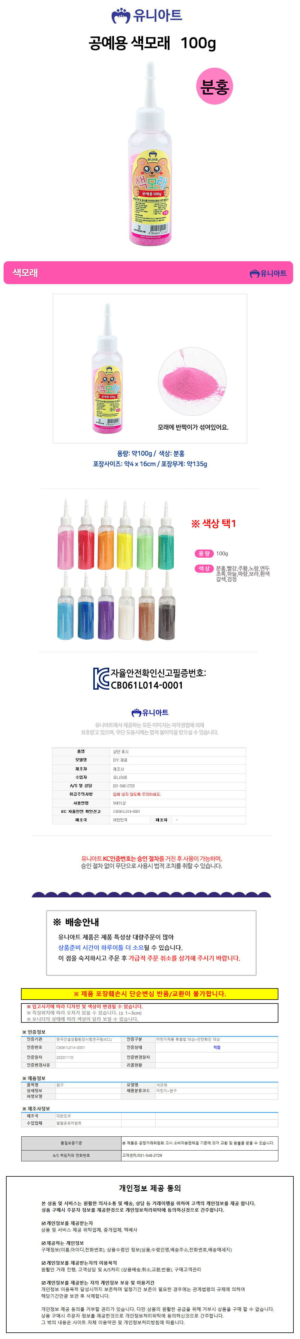 유니아트 (모래) 공예용 색모래 100g (분홍)