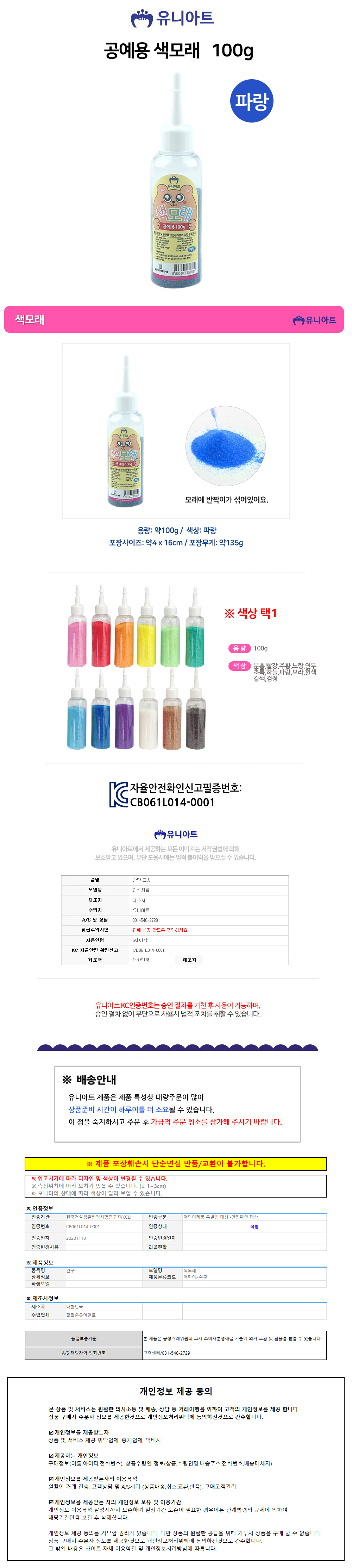 유니아트 (모래) 공예용 색모래 100g (파랑)