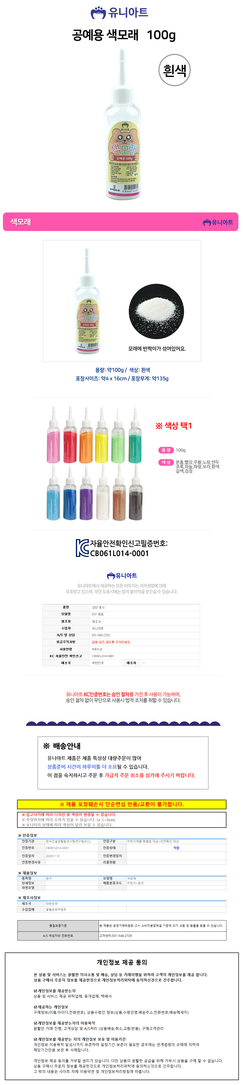 유니아트 (모래) 공예용 색모래 100g (흰색)