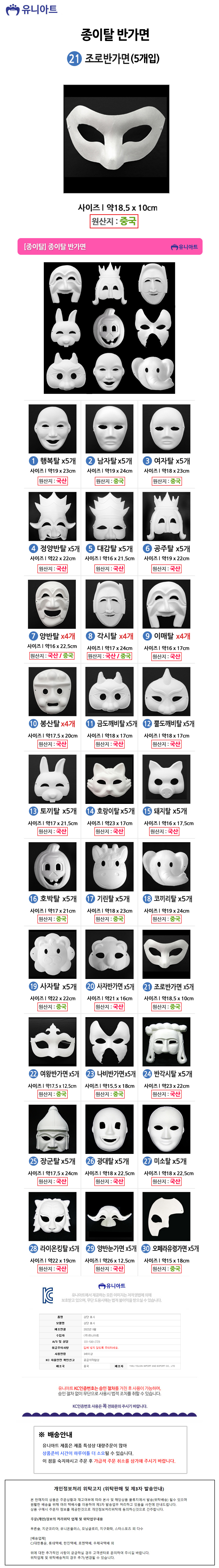 유니아트 종이탈 7500 종이탈 반가면 5개입 21.조로반가면