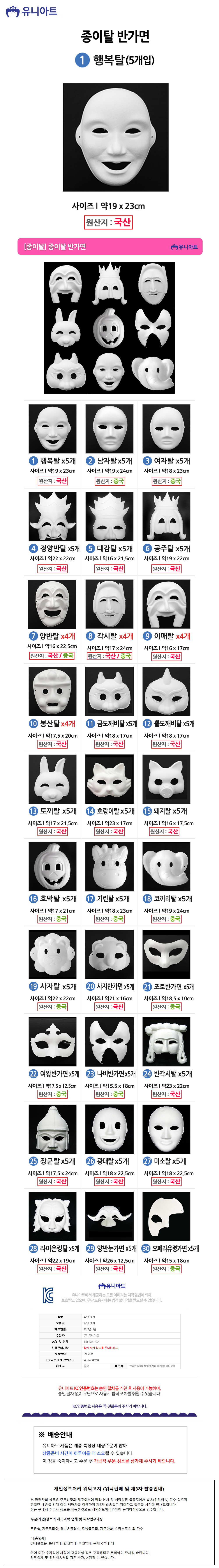 유니아트 종이탈 반가면 5개입 01.행복탈