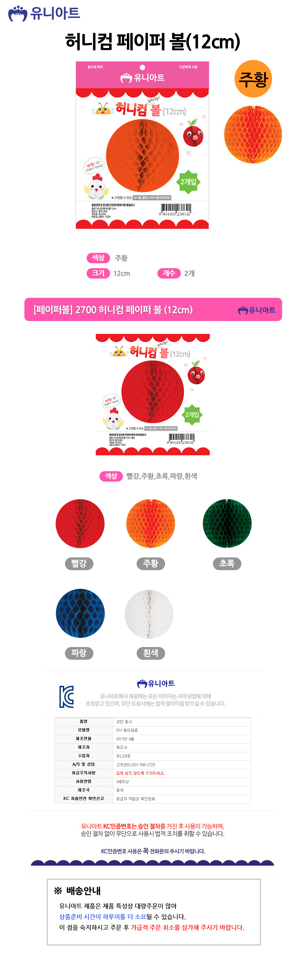 유니아트 페이퍼 2700 허니컴 페이퍼볼 12cm 주황