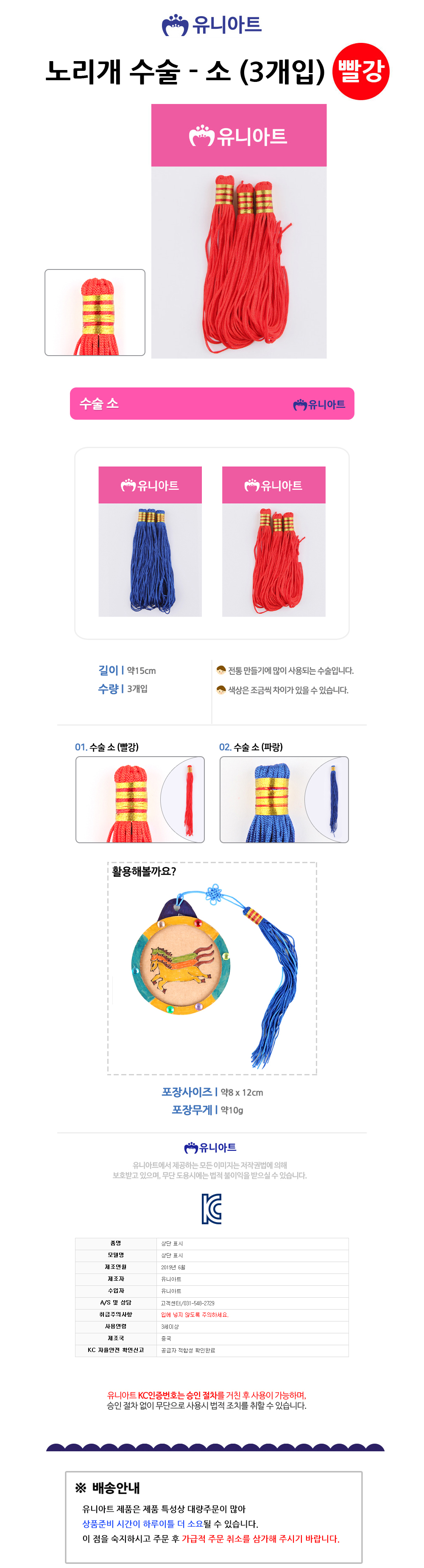 유니아트수술 1000 노리개 소 3개입 빨강