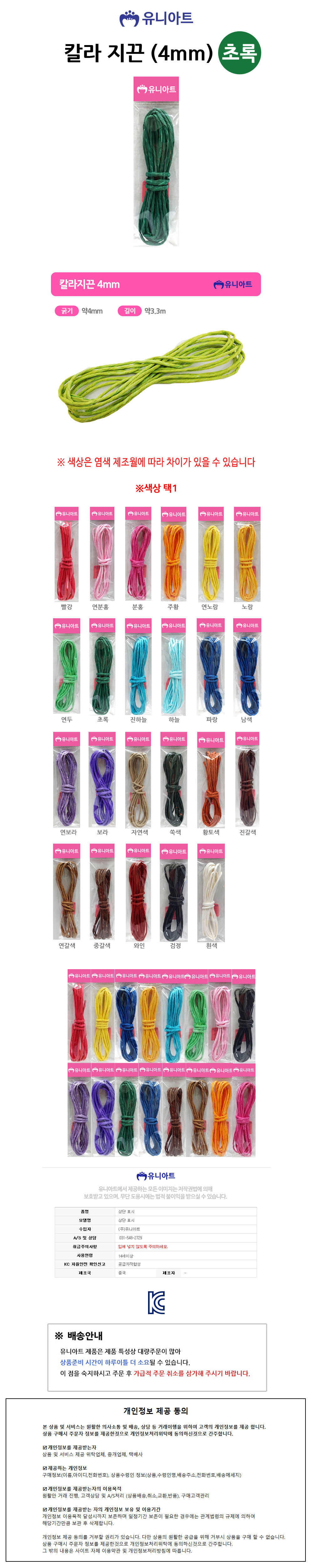 유니아트 (지끈) 1000 칼라 지끈 (4mm) (초록)