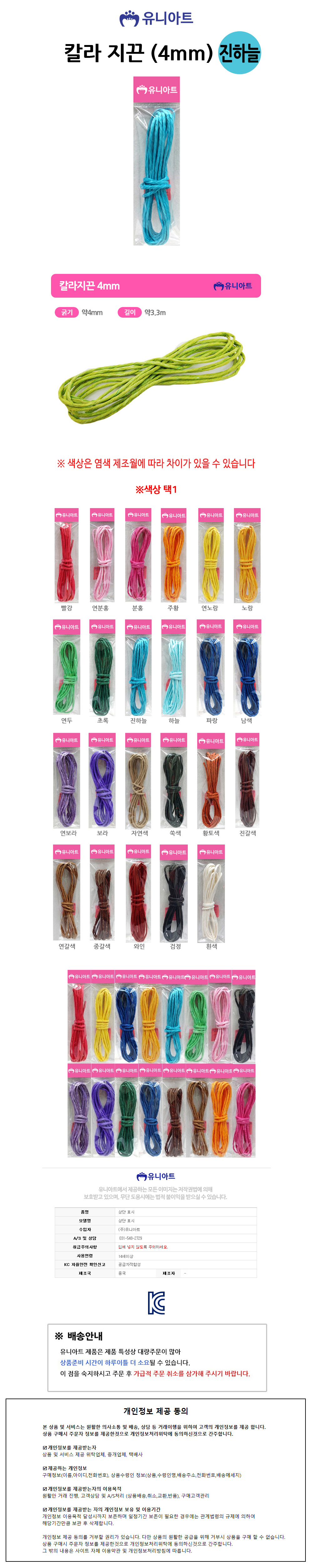 유니아트 (지끈) 1000 칼라 지끈 (4mm) (진하늘)