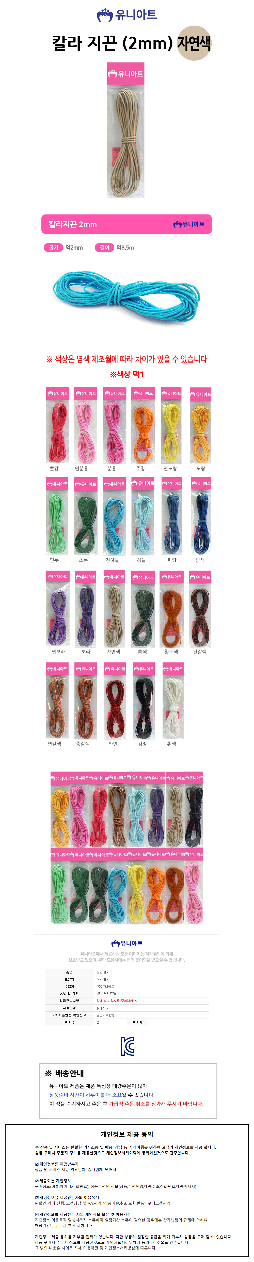 유니아트 (지끈) 1000 칼라 지끈 (2mm) (자연색)