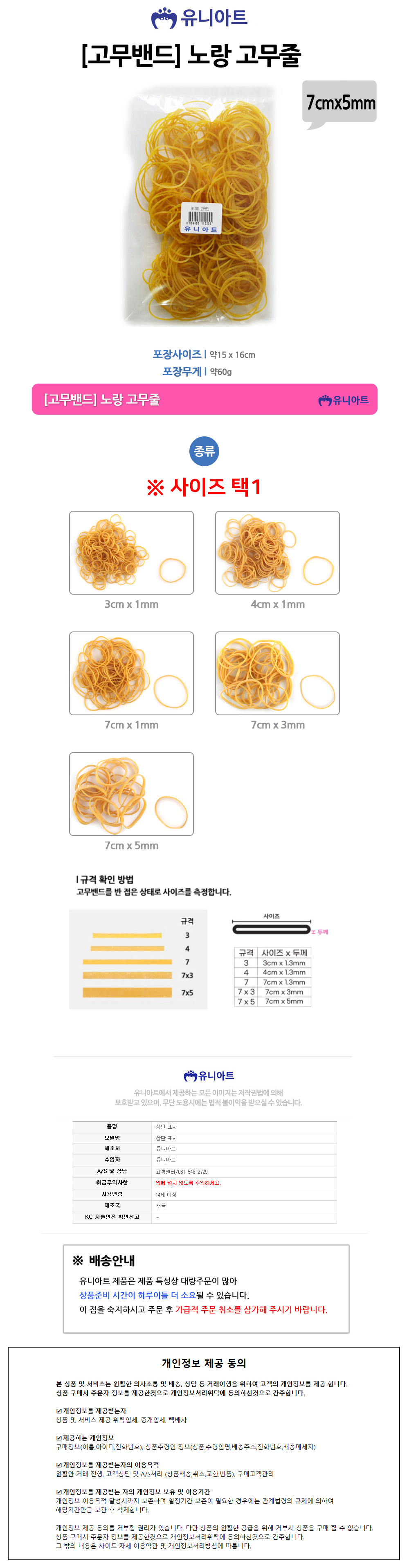 유니아트 고무밴드 2000 노랑 고무줄 7cmx5mm