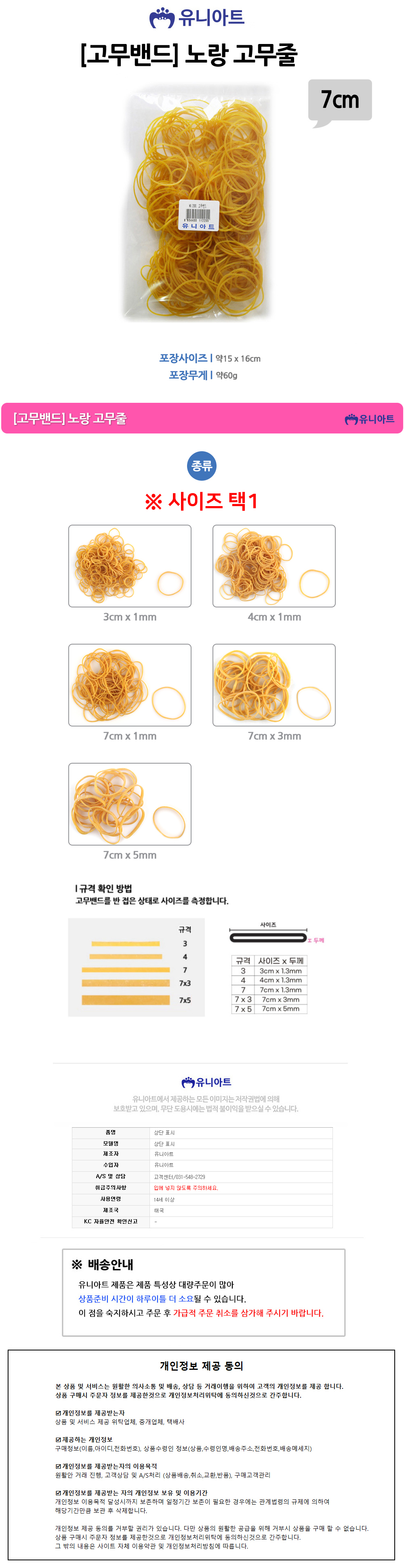 유니아트 고무밴드 2000 노랑 고무줄 7cm