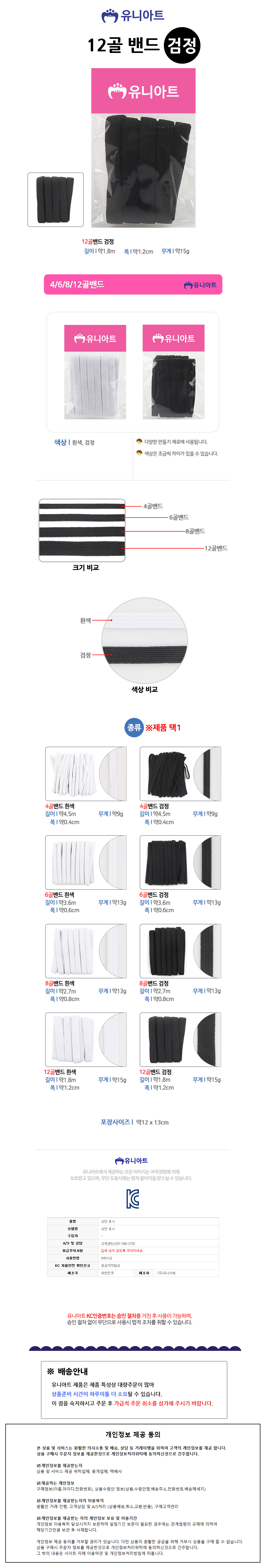 유니아트 (골밴드) 1000 12골 밴드 (검정)