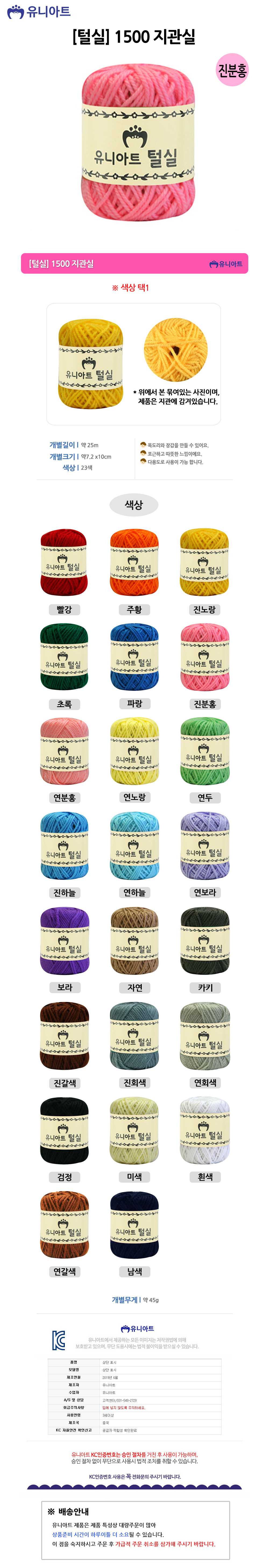 유니아트털실 1500 지관실 진분홍