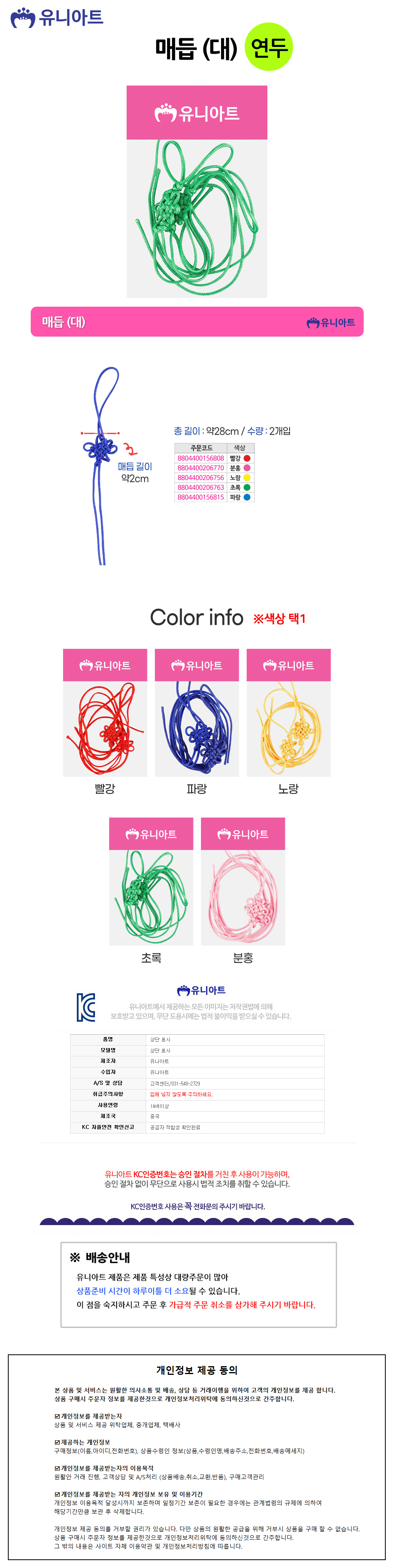 유니아트 (매듭) 1000 매듭 (대) (초록) (2개입)