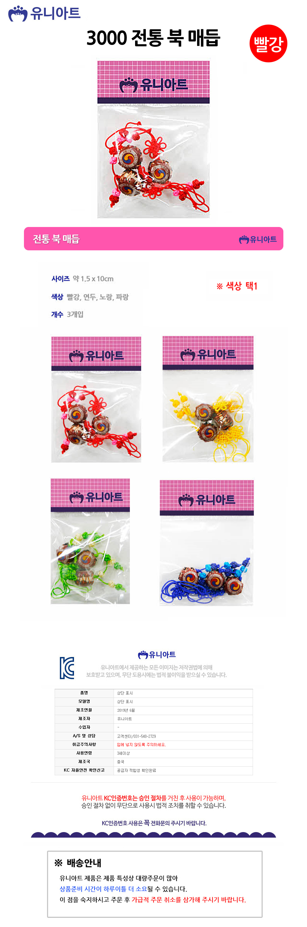 유니아트 매듭 3000 전통 북 빨강 3개입
