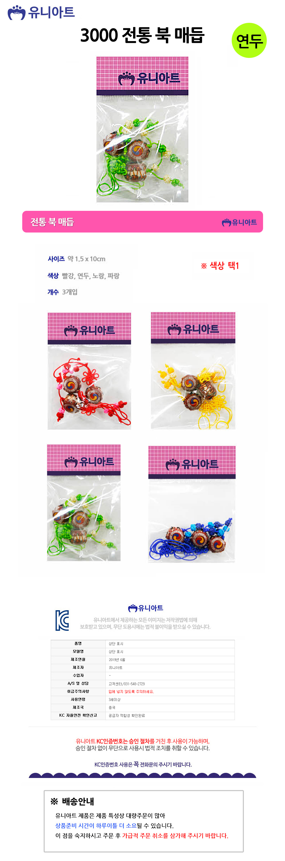 유니아트 매듭 3000 전통 북 연두 3개입