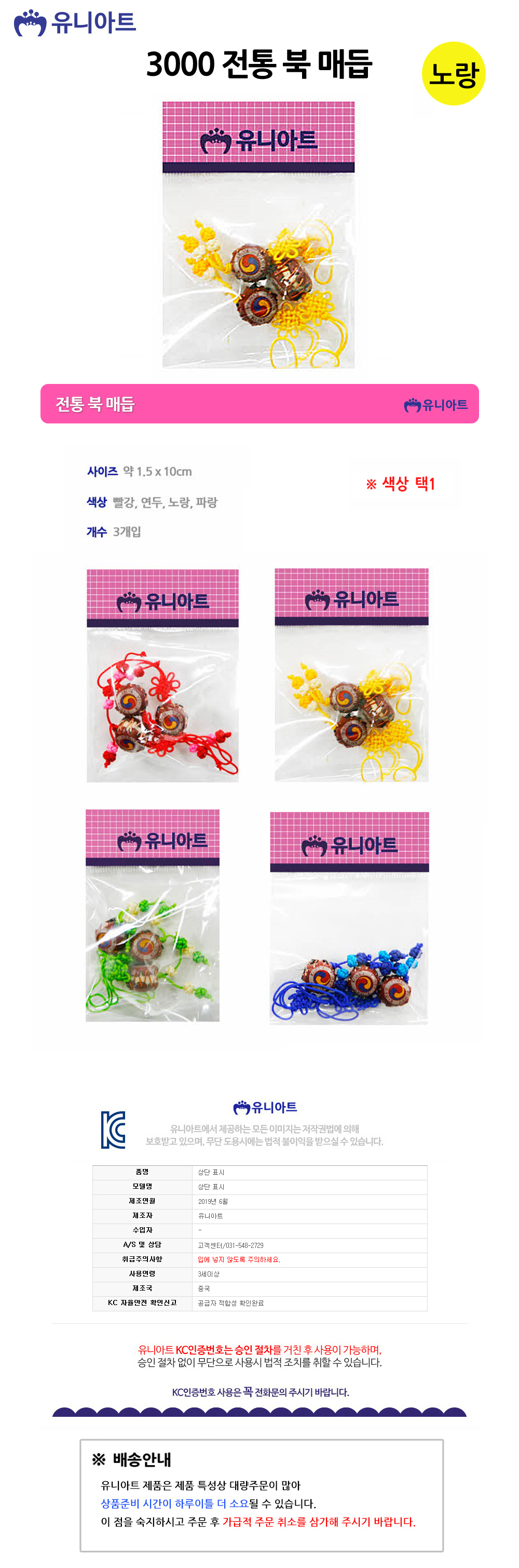 유니아트 매듭 3000 전통 북 노랑 3개입