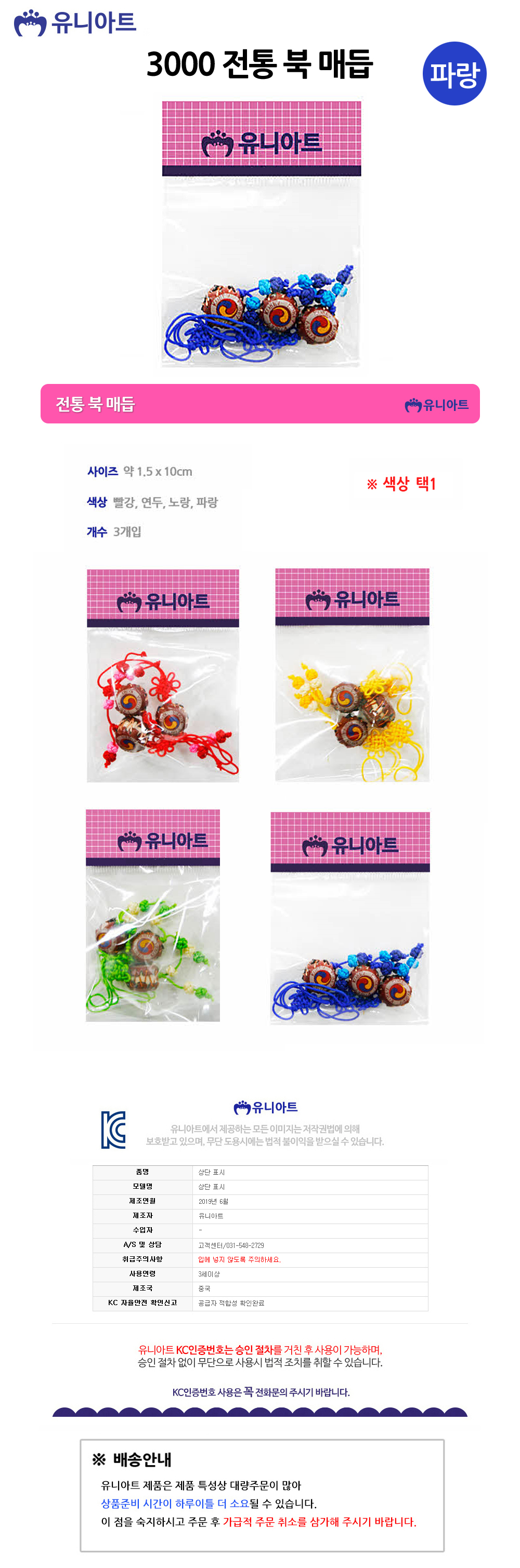 유니아트 매듭 3000 전통 북 파랑 3개입