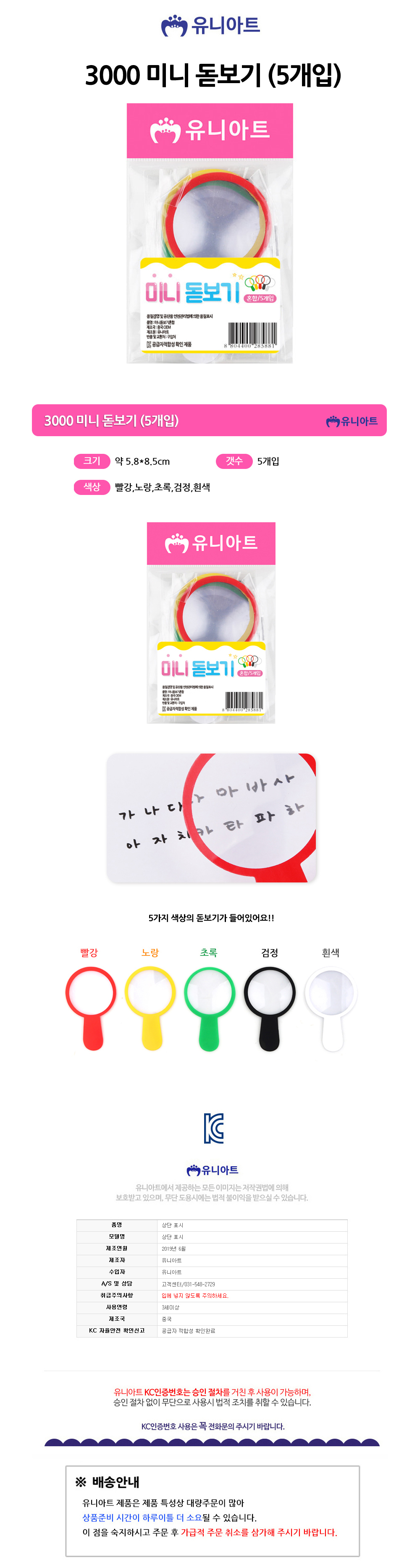 유니아트 3000 미니 돋보기 5개입