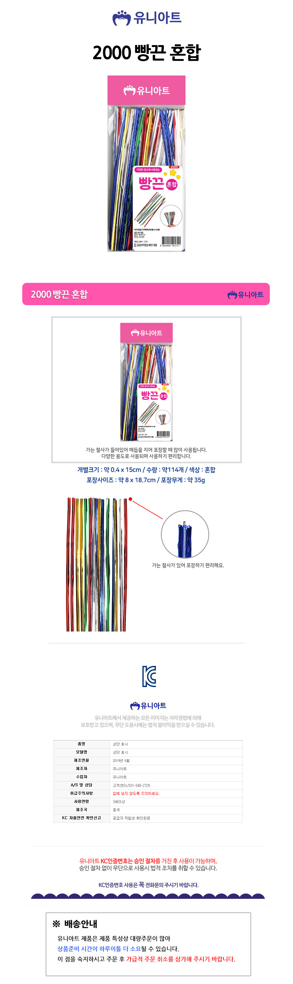 유니아트 (공예철사) 2000 빵끈 (혼합) 선물포장 끈