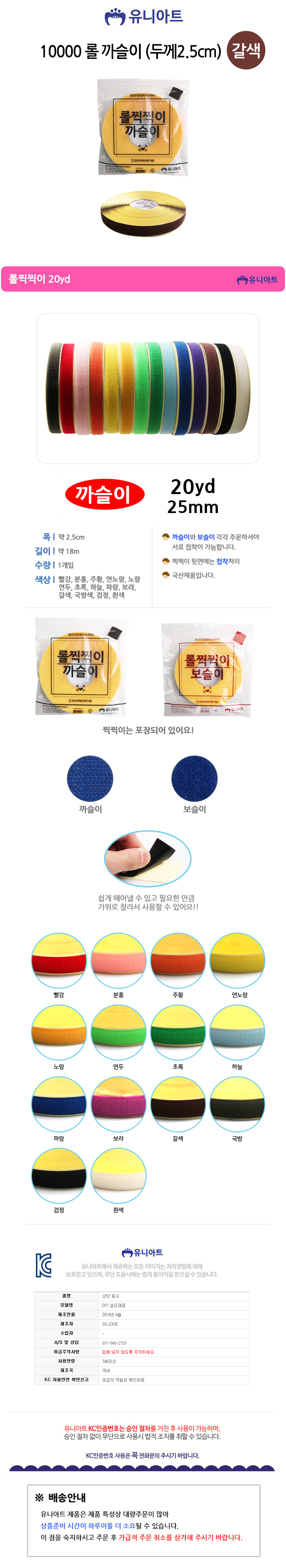 유니아트 찍찍이 10000 롤 까슬이 두께2.5cm 갈색