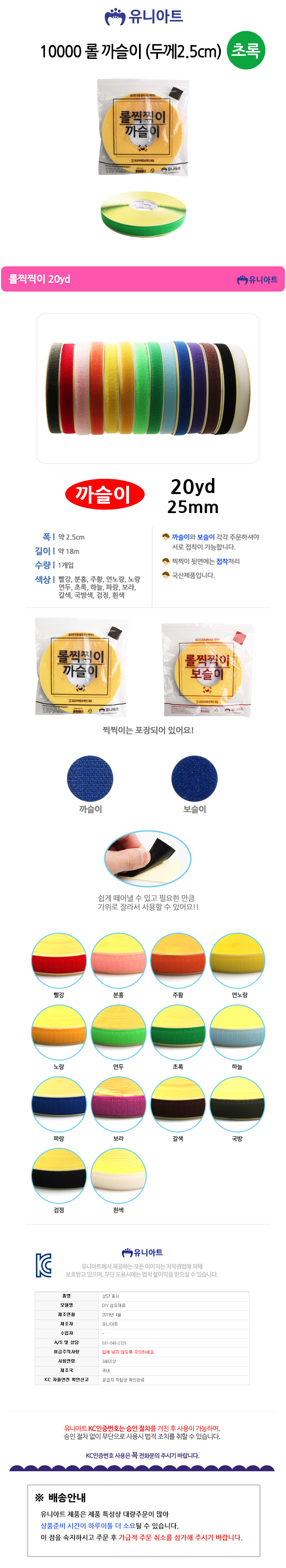 유니아트 찍찍이 10000 롤 까슬이 두께2.5cm 초록