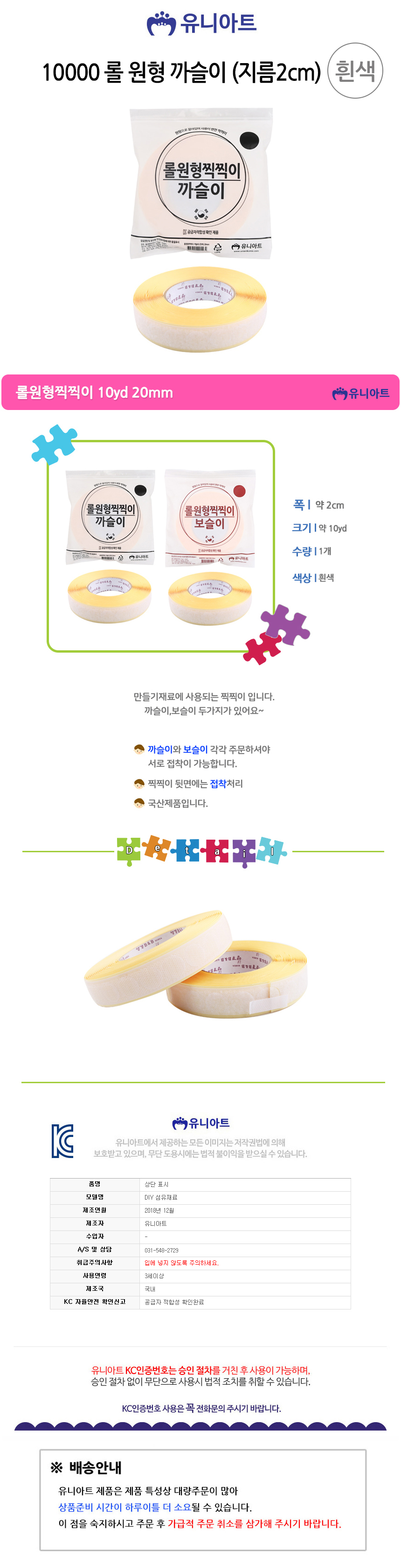 유니아트 찍찍이 10000 롤 원형 까슬이 지름2cm 흰색