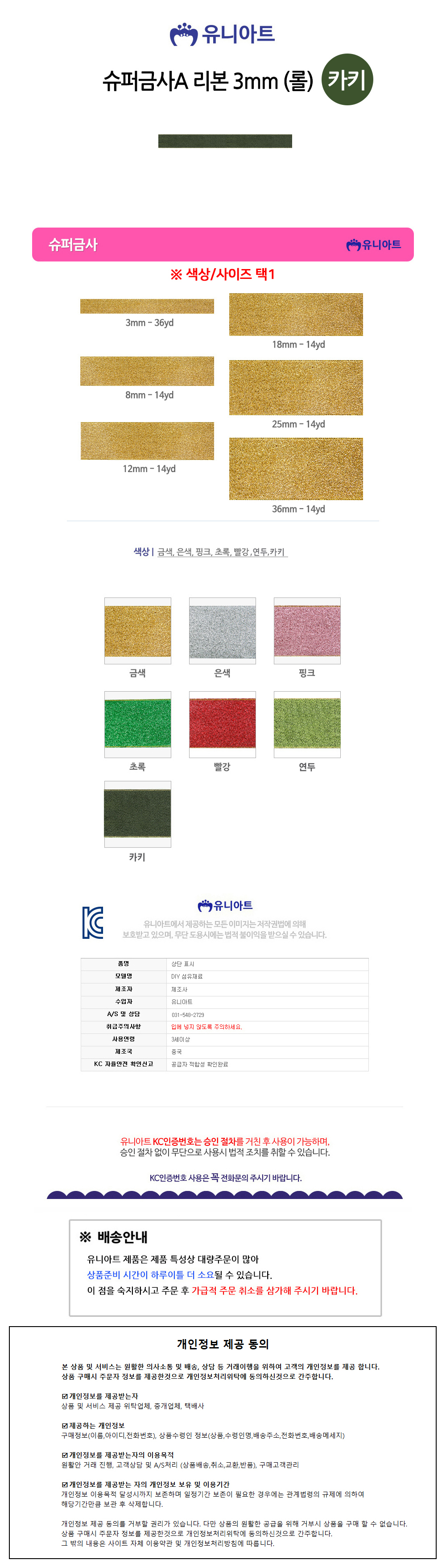 유니아트 (리본) 슈퍼금사A 리본 3mm (카키) (롤)
