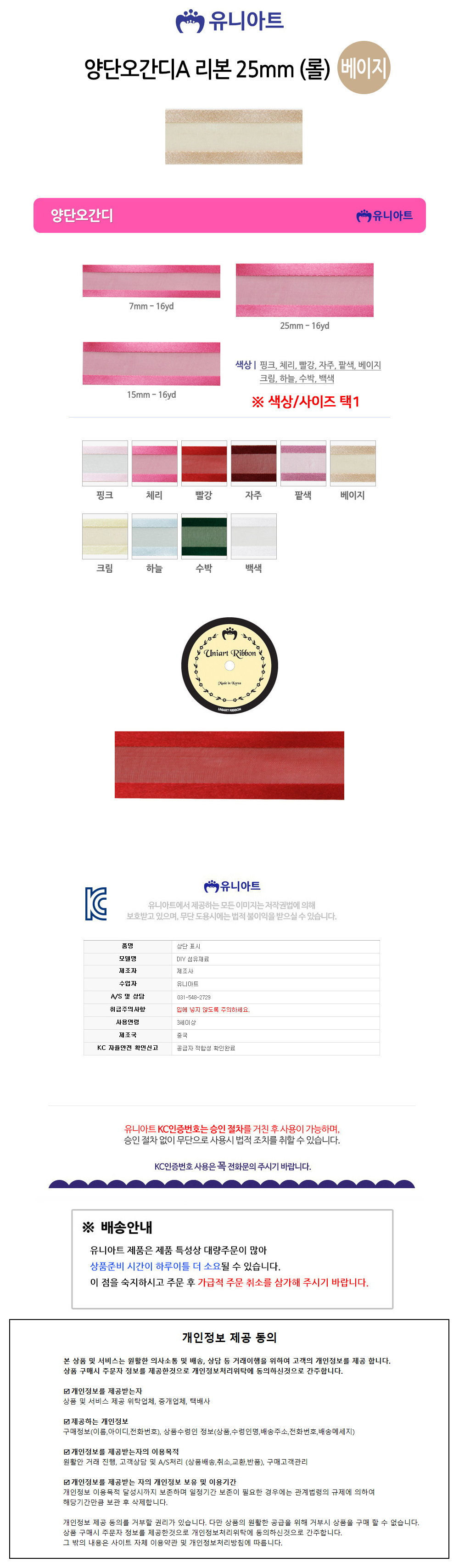 유니아트(리본) 7000 양단오간디A 리본 25mm (베이지) (롤)