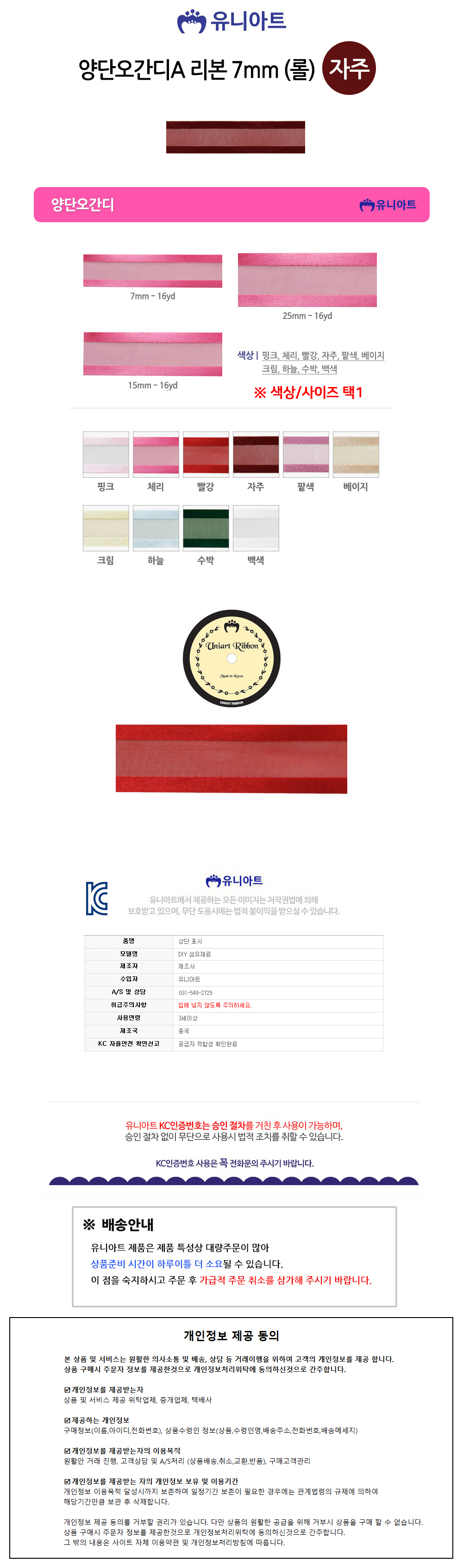 유니아트(리본) 5000 양단오간디A 리본 7mm (자주) (롤)