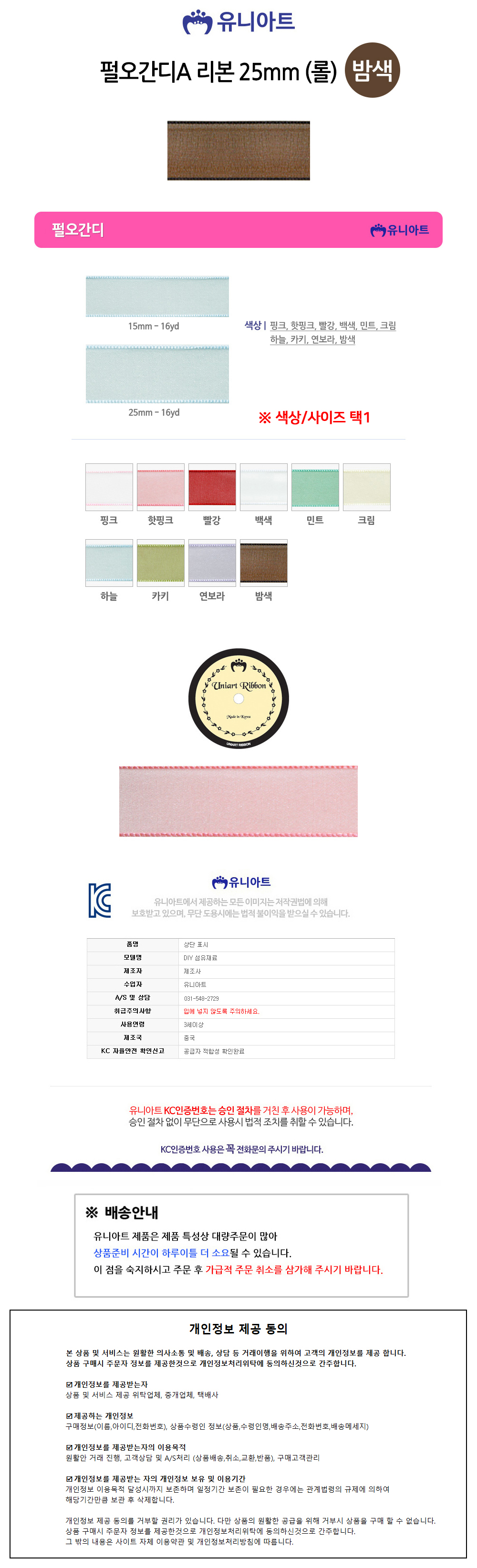 유니아트(리본) 7000 펄오간디A 리본 25mm (밤색) (롤)