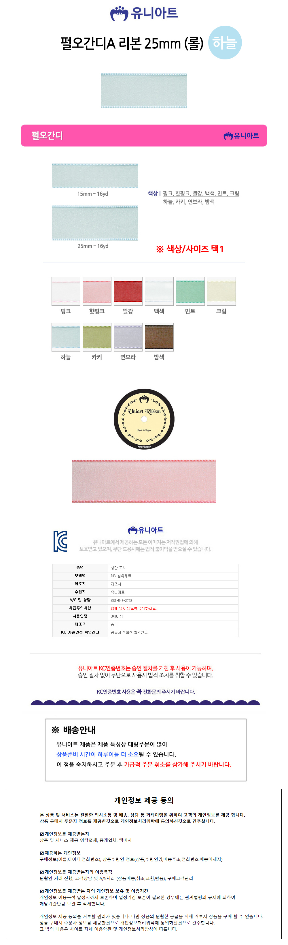 유니아트(리본) 7000 펄오간디A 리본 25mm (하늘) (롤)