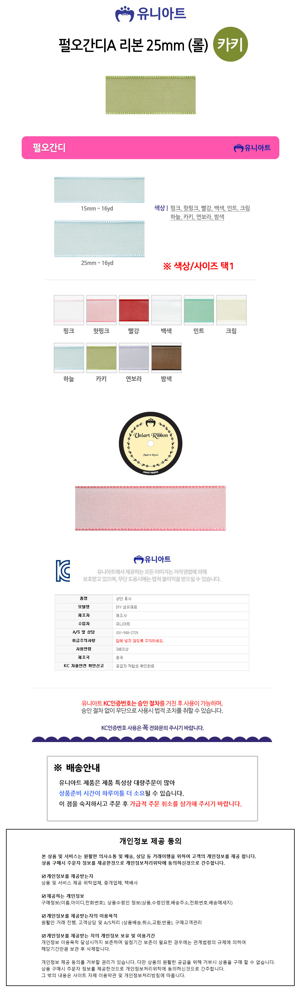 유니아트(리본) 7000 펄오간디A 리본 25mm (카키) (롤)